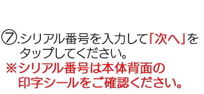 次へ進まない場合は、シリアル番号を再度ご確認して入力ください。