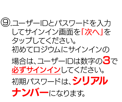 初期パスワードは、ロジウム本体に記載のシリアルコードになります。