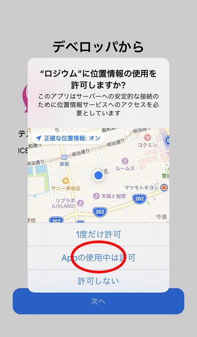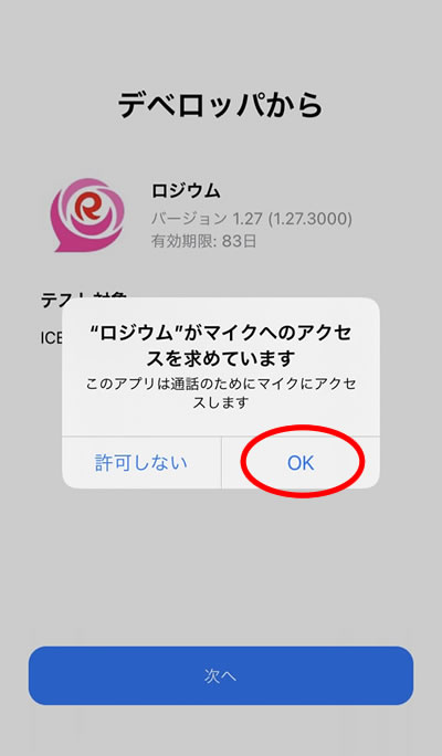 ※ロジウムアプリをインストールして起動後にロジウム利用規約に同意ください。
